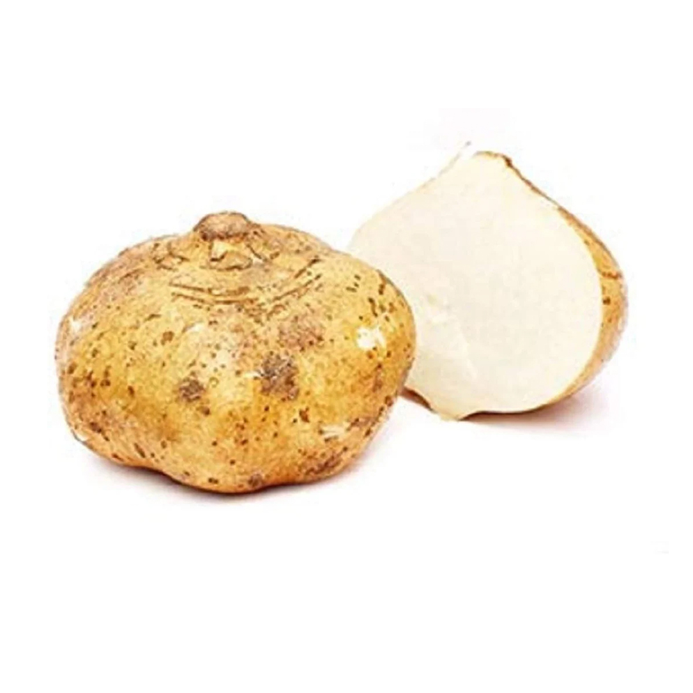 Jicama is a root vegetable with thick brown skin and white fresh meaty. The root tasted slightly crunch sweet, but is low in sugar, making it a good carbohydrate choice for people with diabetes. It offers a great source of fiber, prebiotics, vitamins, minerals, potassium, and a powerful antioxidant. It can be eaten raw as snacks or cook in soup, stir fries, and other dishes.